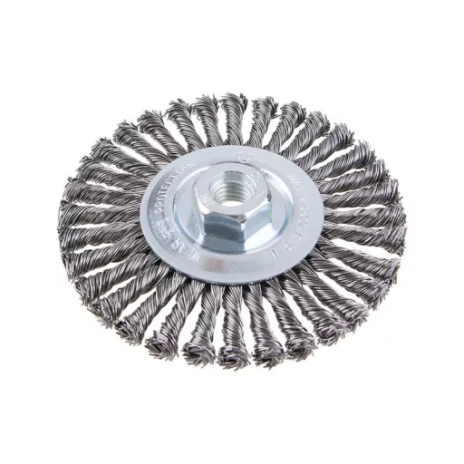 Forgókefe - radiális, kivitel: COPY - szabadalmaztatott huzal 0,5 mm - másolás, extrém terhelés mellett sem bomlik ki, a FESTA kefék garantálják a minőségi felhasznált anyagokat és megmunkálást, átmérő 100 mm Menet M14x2mm Horganyzott kefetest Huzalok száma: 1584, Huzal hossza: 27mm max. megengedett sebesség: 10000 1/min Alkalmazás: festék, rozsda, sorja, hegesztési maradványok, salak eltávolítása, érdesítés, fém tisztítása