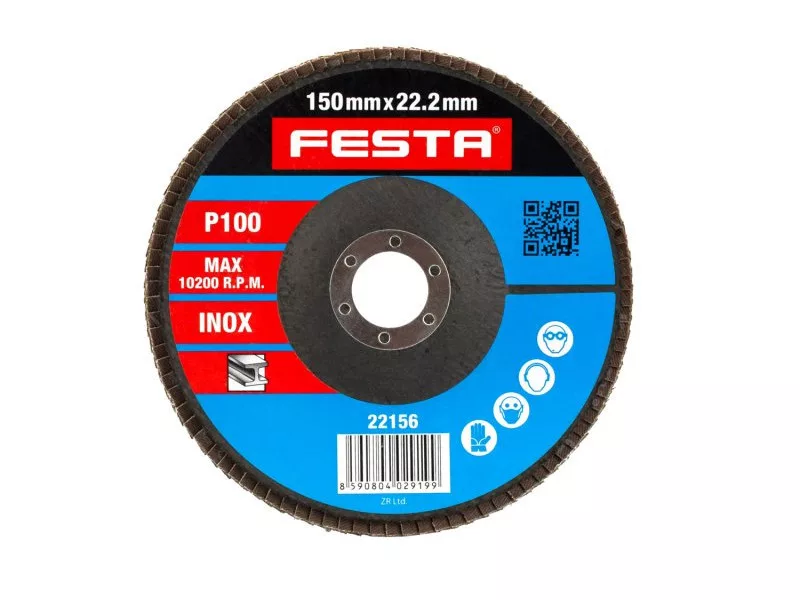 FESTA Fächerschleifscheibe 150 x 22,2 / P100 Inox