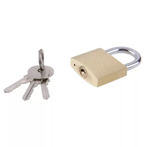 40 mm verstärkter Messingschlosskörper Messingeinsatz Schlüssel: 3 Gewicht: 150 g Verstärkter, gehärteter Stahlbogen für bessere Schnittfestigkeit.