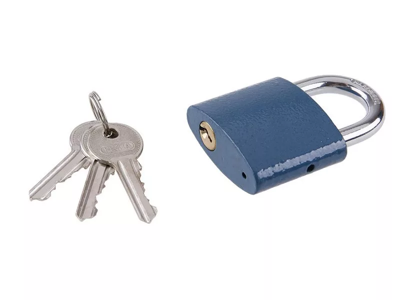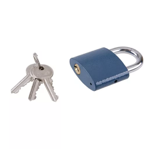A zár acél teste, Sárgaréz betét, Súly: 290g, 3 kulcs, Erősített edzett acélív a jobb vágásállóság érdekében.
