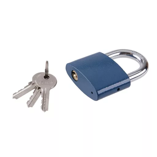 A zár acél teste, Sárgaréz betét, Súly: 430g, 3 kulcs, Erősített edzett acélív a jobb vágásállóság érdekében.