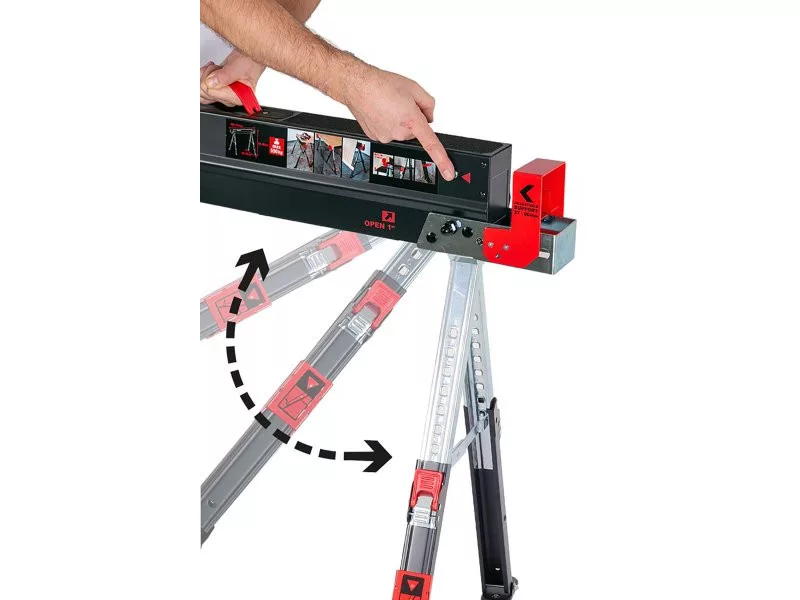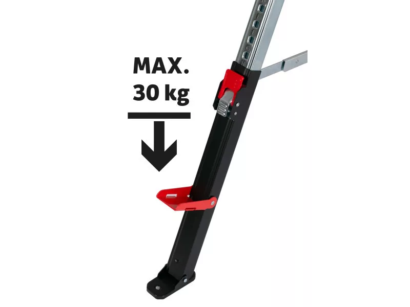 • csapágyfelület csúszásgátló réteggel, a lábak egyik oldalán összecsukható támasztékok OSB lapokhoz, laminátumhoz stb. 30 kg/n teherbírással támogatás