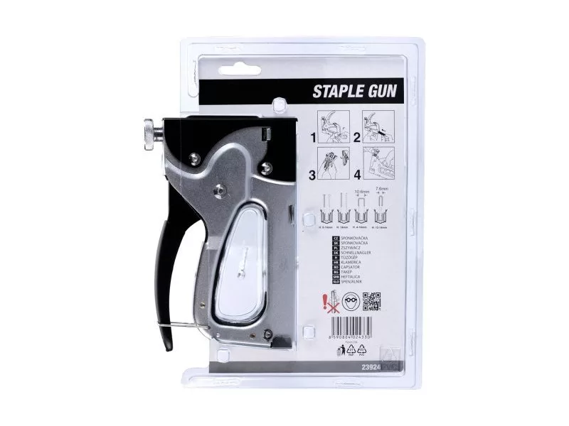 Robusztus, strapabíró konstrukció, Tűzés pontossága - állítható kapocsmélység, Csatok: 4-14mm (23960-64), Szegek: 14mm (23967), Szegek: 14mm (23966), Kerek csatok (23965), Súly: 880g, Könnyű töltés ,0 Felhasználás: kárpitozás, szigetelőfóliák rögzítése, párazáró, papír, karton, szőnyeg.