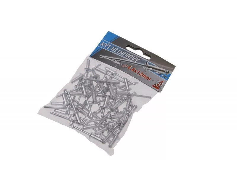 Klassische Rollladen-Aluminiumnieten, Durchmesser 4,8 mm, Länge 12 mm, in einer kleinen Verpackung von 50 Stück, geeignet für Kleinverbraucher.
