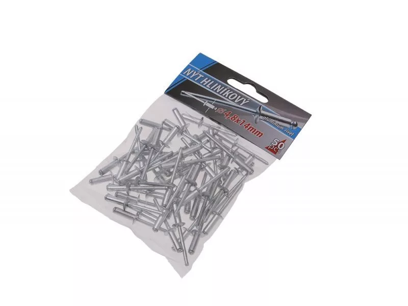 Klasszikus redőny-alumínium szegecsek, átmérő 4,8 mm, hossza 14 mm, 50 db-os kis kiszerelésben, kisfogyasztóknak megfelelő.