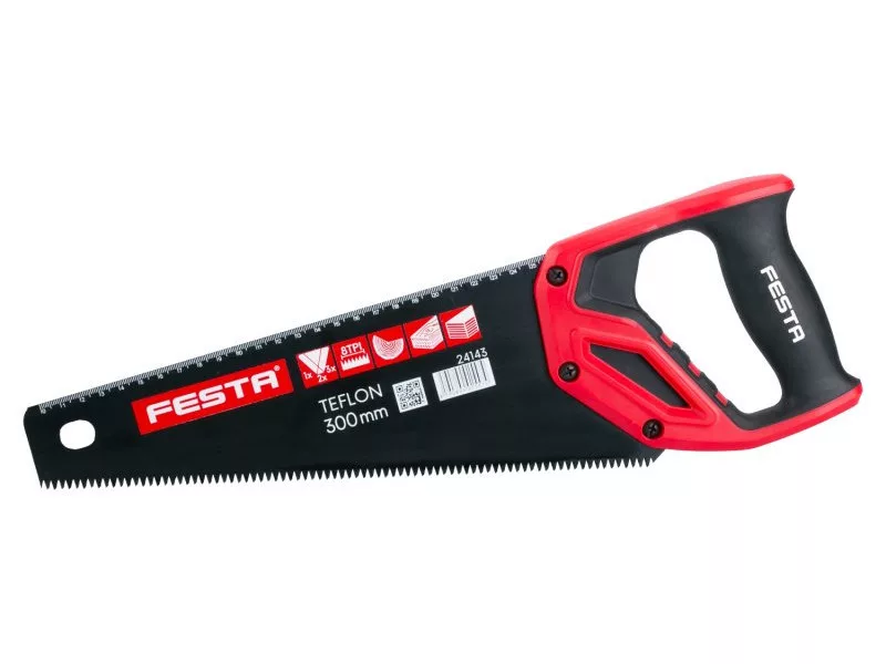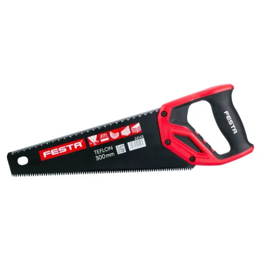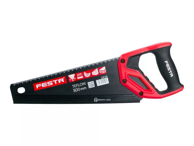 Munkafelület hossza: 300mm, ABS fogantyú lágyított TPR gumival, nagyfrekvenciás edzett hármas csiszolt fogak, keménység: 47-52HRC, fogazás: 7TPI nyél, 45 és 90 szögek jelölését teszi lehetővé.