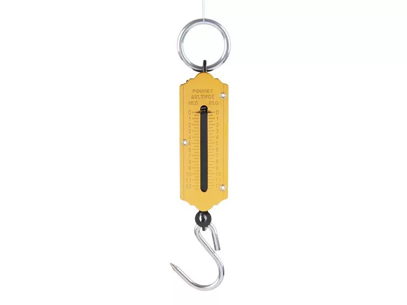 Hordozható rugós mérleg horgászok, vadászok, kertészek stb. számára. Maximális terhelés: 12,5 kg.