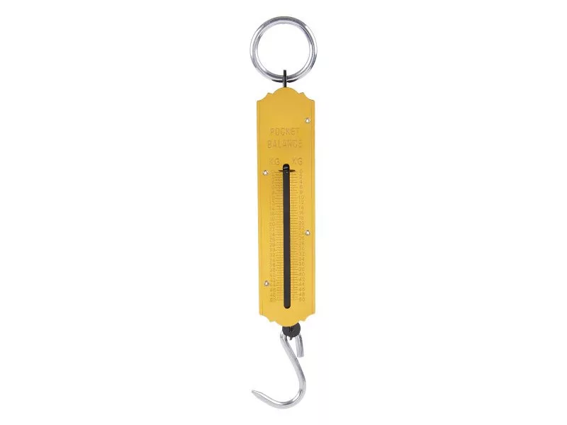 Hordozható rugós mérleg horgászok, vadászok, kertészek stb. számára. Maximális terhelés: 50 kg.