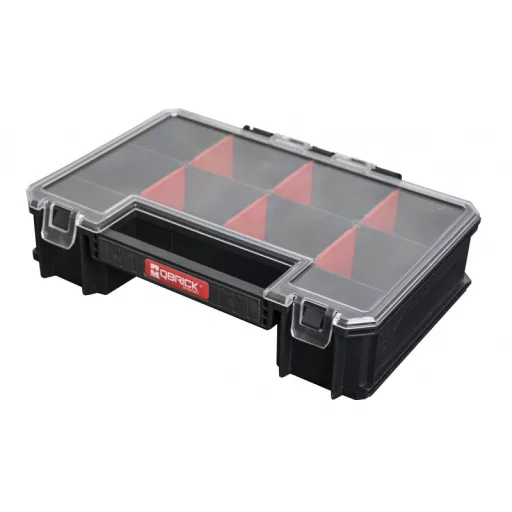 Das Polycarbonat-Deckel, die verstellbaren Trennwände und der komfortable Griff gewährleisten hohe Haltbarkeit und Ergonomie.