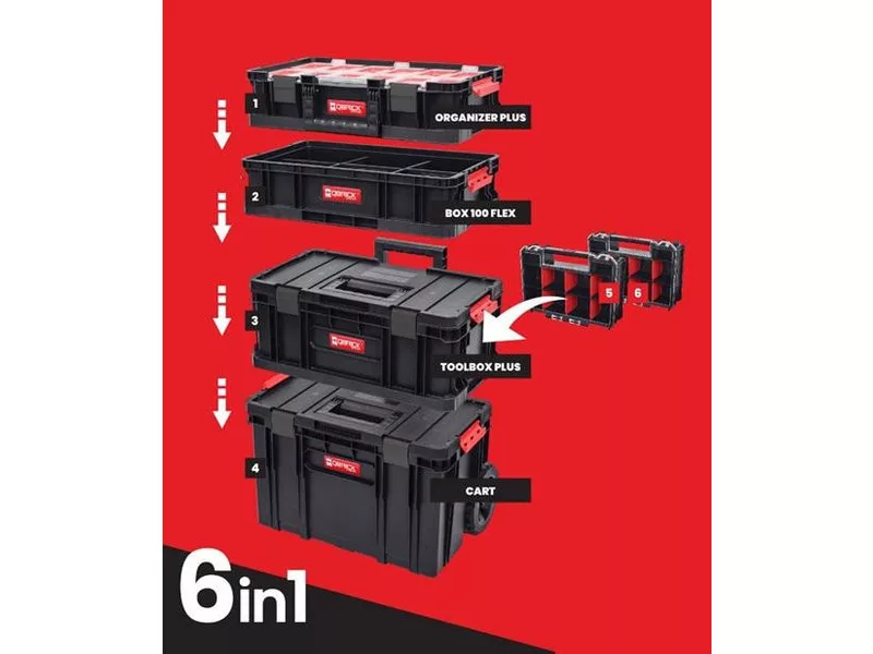 Mobilwagen, Werkzeugkiste und Organizer für kleine Teile oder Zubehör, verbunden mit drei Paaren von leicht zu bedienenden seitlichen Anschlüssen.
