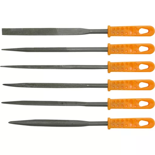 The set includes six files for precision work, such as key making.