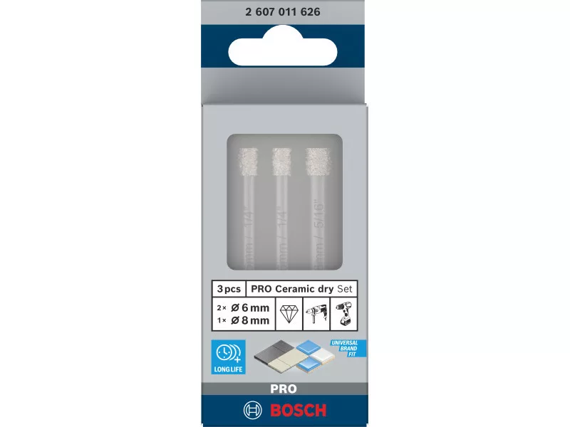 BOSCH PRO Trockendiamantbohrerset 3-teilig (6 / 6 / 8 x 66 mm) mit zylindrischer Spannfläche