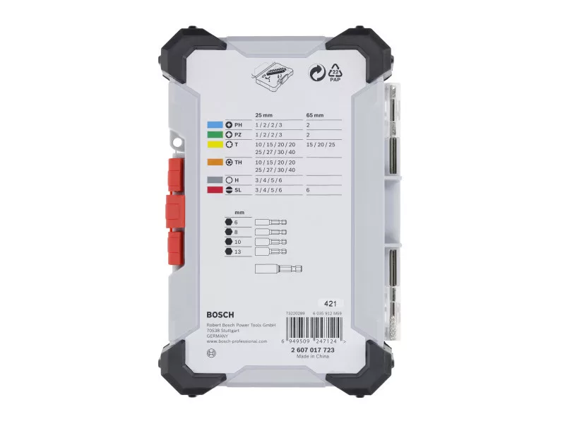 - Die in dem Set enthaltenen Schrauberbits sind farbcodiert, so dass das gewünschte Zubehör leicht ausgewählt werden kann