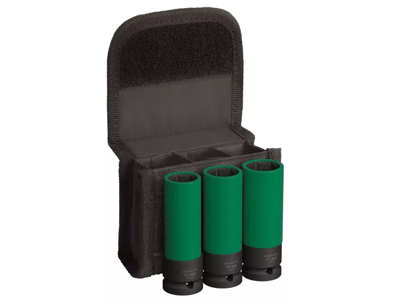 - Der Satz enthält: 1/2-Zoll-Steckschlüssel; Breite zwischen den flachen Flächen: 21 mm; Länge: 86 mm