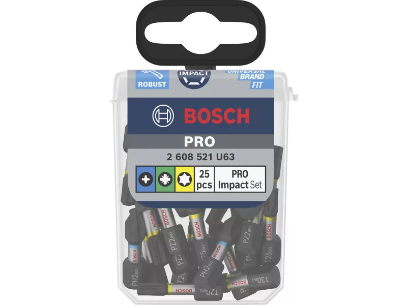 BOSCH PRO Impact Bitset PH2/PZ2/T20/25/30x5db x 25mm Tic Tac Box 1/4" Hex (25 Stück)