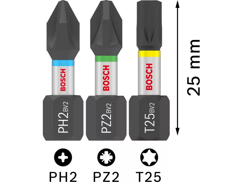 BOSCH PRO Impact Bitset PH2/PZ2/T20/25/30x5db x 25mm Tic Tac Box 1/4" Hex (25 Stück) BOSCH PRO Impact Bitset PH2/PZ2/T20/25/30x5db x 25mm Tic Tac Box 1/4" Hex (25 Stück)