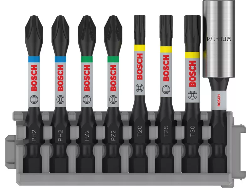 Setinhalt: Universelle magnetische Halterung, PH2 (2 Stück), PZ2 (2 Stück), T20, T25, T30