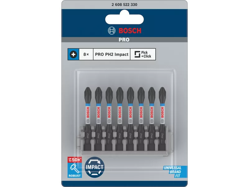 Das PRO Impact Set ist eine ausgezeichnete Wahl für Mechaniker, die nach robusten, hoch belastbaren Schlagbohrer-Bits suchen. Die Bits werden aus wärmebehandeltem, modifiziertem Stahl hergestellt, um außergewöhnliche Festigkeit und Widerstandsfähigkeit gegen hohes Drehmoment zu gewährleisten. Ihre Torsionszone absorbiert die durch das Drehmoment an der Bit-Spitze erzeugte Spannung, um sicherzustellen, dass sie nicht brechen. Zur Farbkodierung hat jedes Bit einen Ring, der den Kopftyp anzeigt, sowie eine Lasermarkierung, die bei der Auswahl der erforderlichen Größe hilft.