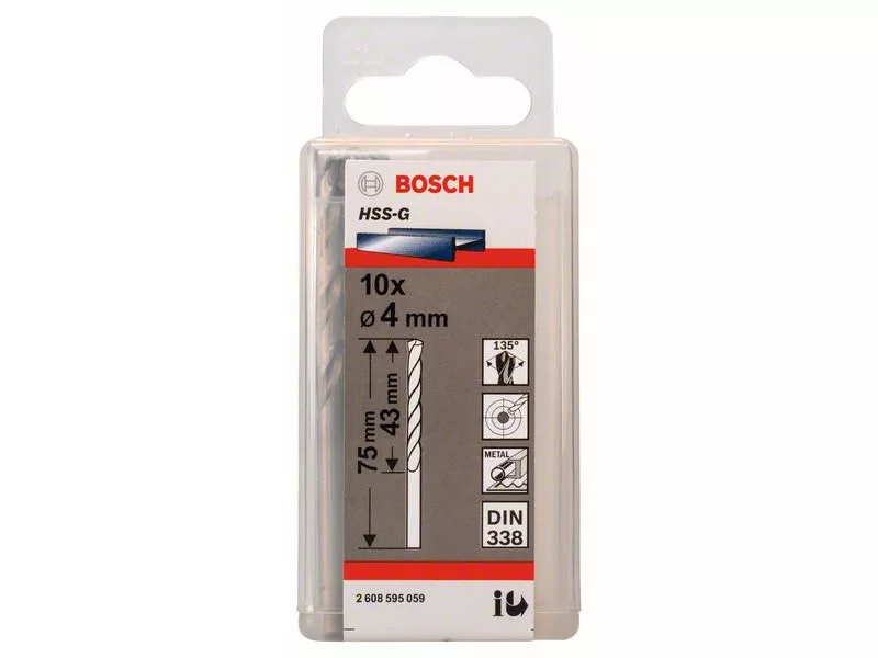 Der Bohrerschaft ist vom Typ N (Nutwinkel), der Spitzenwinkel beträgt 135 Grad und die Toleranz des Durchmessers ist h8