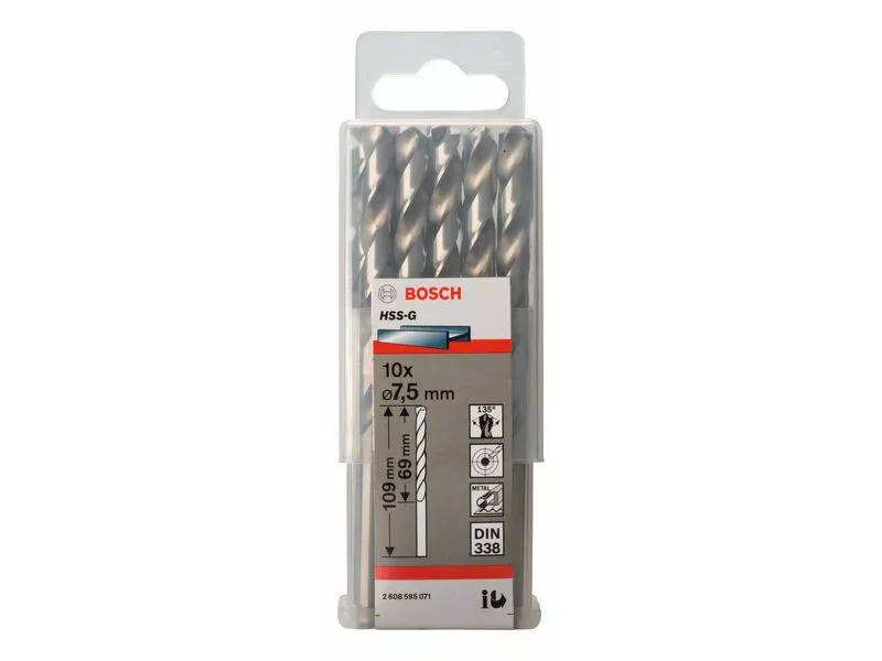 Der geschliffene Schnellarbeitsstahl-Spiralbohrer wird nach der Norm DIN 338 hergestellt