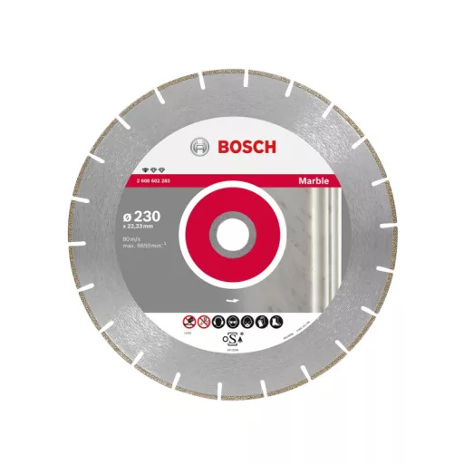 Die Scheibe kann zum Schneiden von Marmor und Kunststoffen verwendet werden.