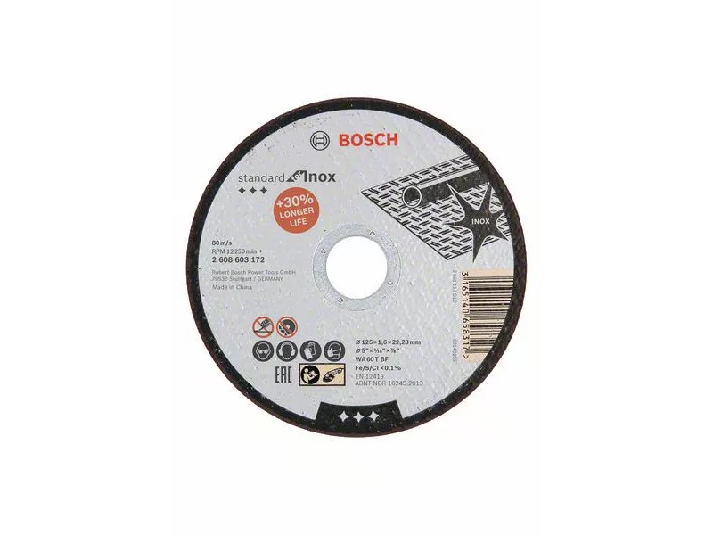 Die Bosch Trennscheiben erfüllen auch strengere Sicherheitsanforderungen, wie z.B. die Vorschriften der EN 12413