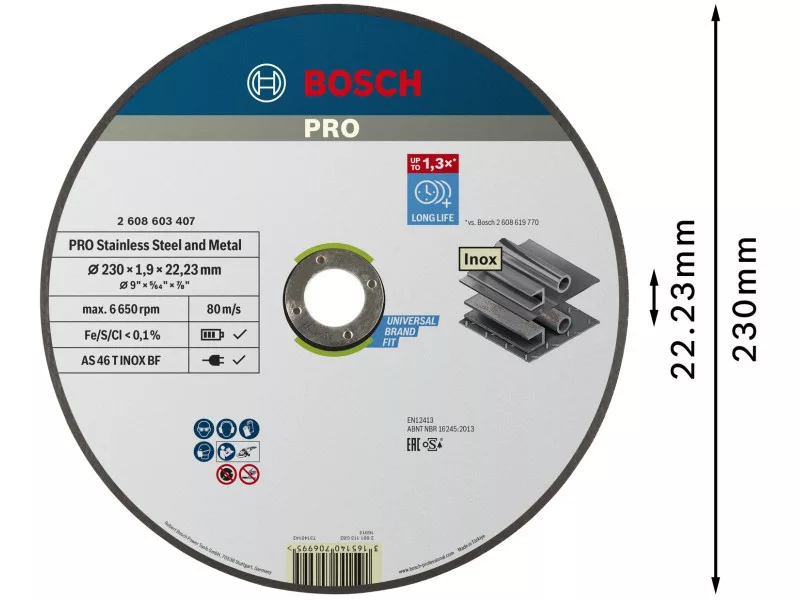 Die PRO Edelstahl- und Metallbinderscheibe besteht aus einer hochwertigen Aluminiumoxidkörnung für Stärke und Langlebigkeit. Die Schleifkörnungen wurden mit funktionellen Füllstoffen kombiniert und in Phenolharz eingebettet, um die Festigkeit zu erhöhen. Die Trennscheibe wurde mit einem hochwertigen Glasfasernetz verstärkt, um eine sicherere und stabilere Leistung zu gewährleisten. Plus, wir haben es metallfrei gemacht. Das bedeutet, dass Sie sich keine Sorgen über Rost auf Ihrem Werkstück machen müssen, wenn Sie nur Edelstahl schneiden.