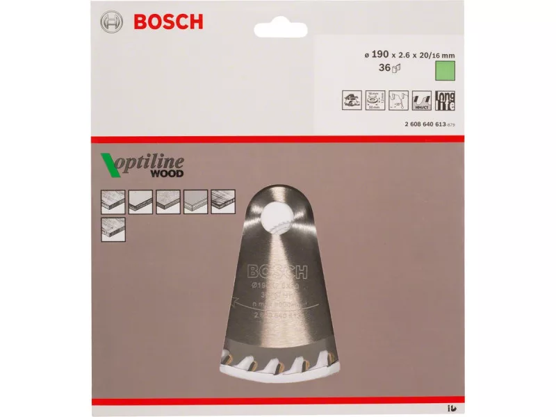 BOSCH Sägeblatt für Holz 190 x 20/16 x 2,6 mm / 36T Optiline Wood ATB