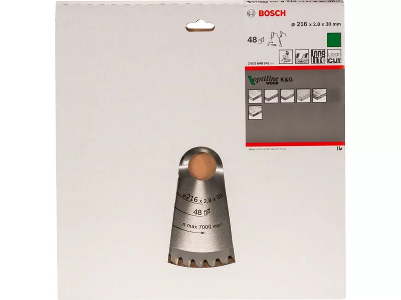 Je nach Anzahl der Zähne kann mit den Optiline Wood Kreissägeblättern, die mit einer Wechselzahngeometrie (ATB) hergestellt werden, eine unterschiedliche Qualität erreicht werden: bei einer hohen Zahnzahl schneidet das Sägeblatt sauber, während eine niedrige Zahnzahl einen sicheren und effizienten Schnitt gewährleistet