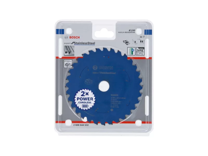 Das Expert for Stainless Steel Kreissägeblatt hat eine hervorragende Lebensdauer, dank der speziellen metallbasierten ResisteQ-Zähne und der korrosionsbeständigen ProteQtion-Beschichtung, die Rostbildung verhindert und eine hervorragende Schnittleistung bietet