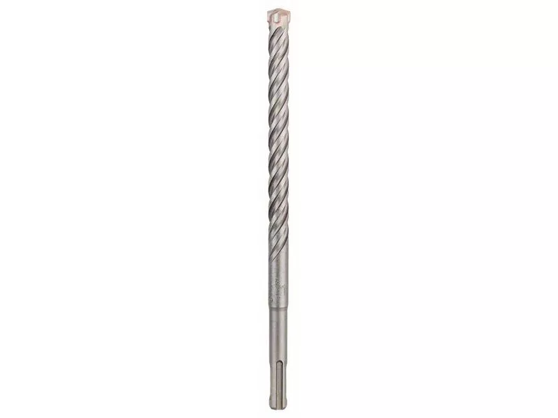 Der "schrägwinklige" Kopf mit seinen großen und kurzen Staubabzugskanälen in der 4-Kant-Ausführung sorgt für eine schnelle Staubentfernung, wodurch der Bohrer schnell und mit geringem Verschleiß durch Beton und Eisen schneidet
