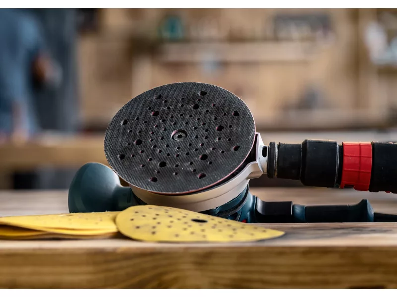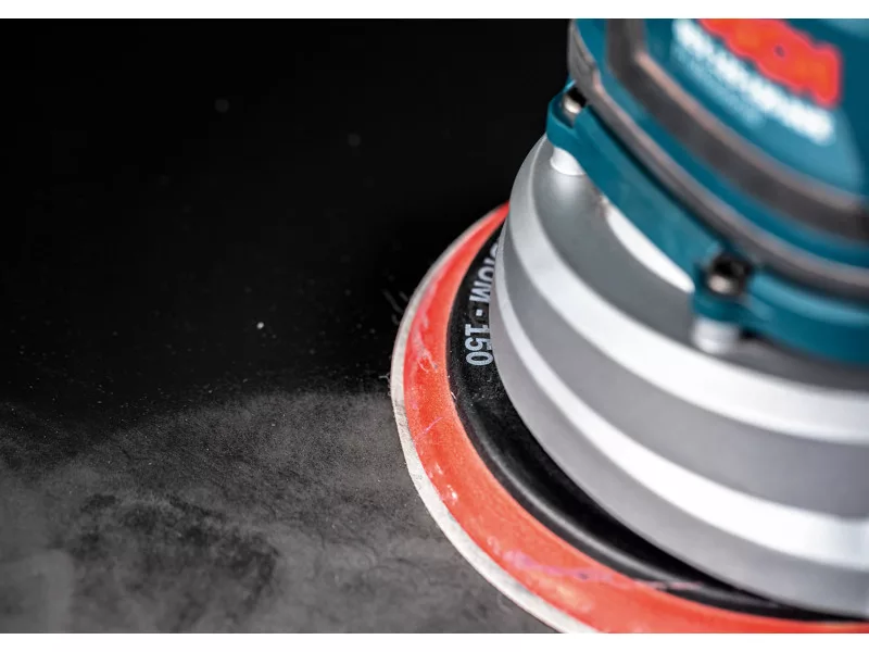 Hocheffiziente Staubabsaugung mit Bosch Particle Control. Der Staub wird von der geschliffenen Oberfläche in die Staubabsauganlage geleitet, was die Luftqualität, Geschwindigkeit und Langlebigkeit verbessert.