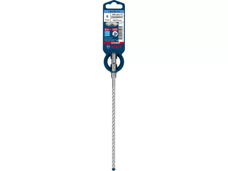 Dank der Bosch Carbide Technologie und der soliden Hartmetallspitze hält der EXPERT SDS plus-7X Typ viel länger als herkömmliche Bohrhämmer