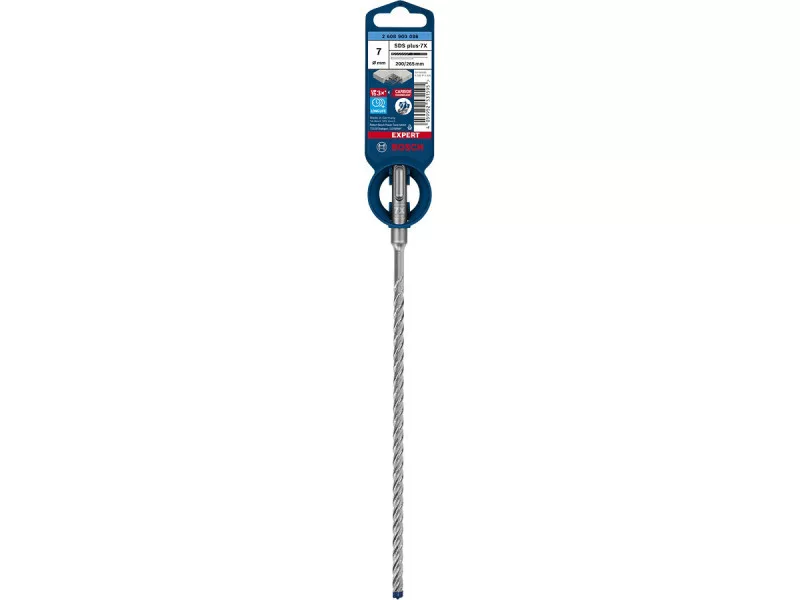 Dank der Bosch Carbide-Technologie und der massiven Hartmetallspitze hält der EXPERT SDS plus-7X Typ viel länger als herkömmliche Hammerbohrer