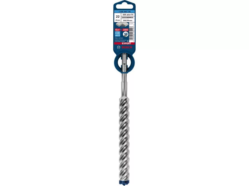 Dank der Bosch Carbide-Technologie und der massiven Hartmetallspitze hält der EXPERT SDS plus-7X viel länger als herkömmliche Hammerbohrer