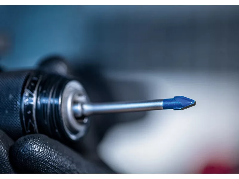 Deshalb hat Bosch den EXPERT HardCeramic Keramikbohrer entwickelt, der in der Lage ist, harte Fliesen ohne Kühlung zu bohren, und viel langlebiger ist als der Standardbohrer für Fliesen