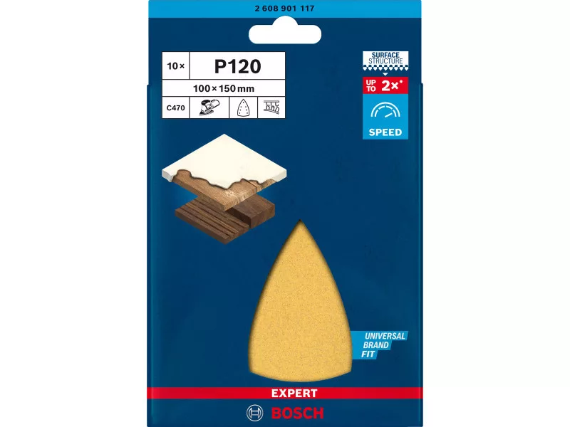 BOSCH EXPERT C470 Klett-Deltaschleifblatt 7 Löcher 100 x 150 mm / P120 (10 Stück)