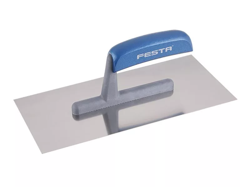 Rozsdamentes acél egyenes simító FESTA 280x130 mm fa lakkozott nyéllel, lapvastagság 0,8 mm. A penge tökéletes formájú, első osztályú edzett rozsdamentes acélból készült. főként csempék és burkolatok alá történő ragasztók felhordására, valamint esztrichek, stukkó, vakolatok, tömítőanyagok és egyéb építőanyagok felhordására szolgál.