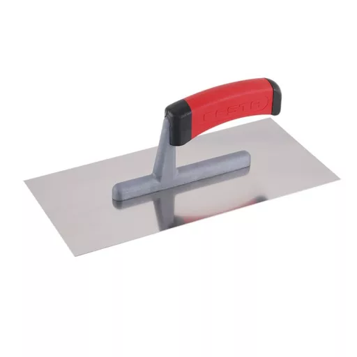 Rozsdamentes lapos simító FESTA 280x130 mm gumi nyéllel, lemezvastagság 0,8 mm. A penge tökéletes formájú, első osztályú edzett rozsdamentes acélból készült. Elsősorban csempék és burkolatok alá ragasztók felhordására, valamint esztrichek, stukkó, vakolatok, tömítőanyagok és egyéb építőanyagok felhordására használják.