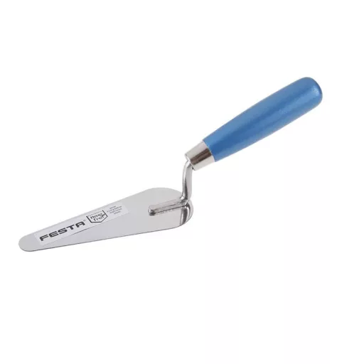 Rozsdamentes acél macskanyelv kanál FESTA 140x75 mm, fa nyéllel. Gipsz, stukkó stb. tisztítására és kezelésére szolgál. A kanál rozsdamentes acélból készült (1,0 mm vastag).