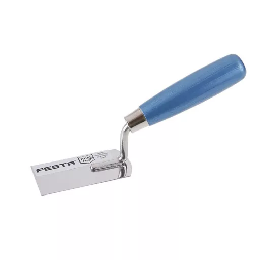 Radírozó kanál rozsdamentes acél FESTA 40 mm, fa nyéllel. Minőségi rozsdamentes acél. Az építőiparban befejező munkákhoz használják.