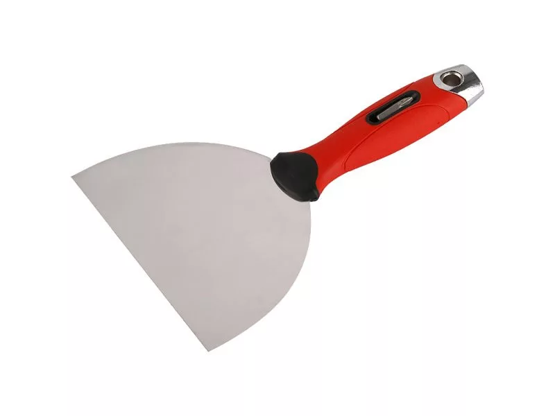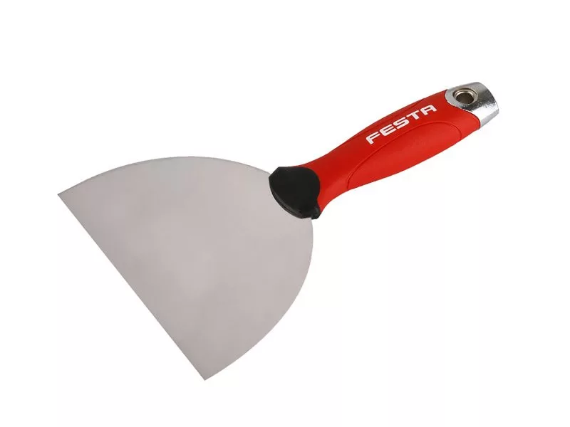 Die FESTA 150 mm Edelstahlspachtel besteht aus hochwertigem rostfreiem Stahl, der Griff ist ergonomisch geformt und gummiert. Sie wird vor allem in der Baubranche, insbesondere in der Trockenbauindustrie, für die perfekte Verkleidung von Trockenbau-Fugen verwendet. Im oberen Teil des Griffs befindet sich ein Ph °2 Einsatz, der verwendet wird, falls Schrauben aus der Oberfläche herausgezogen werden müssen.