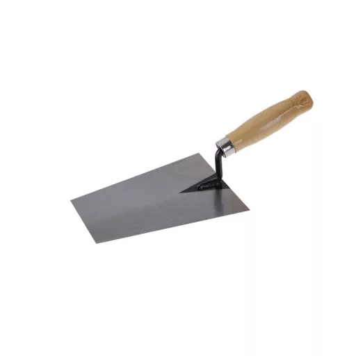 Csiszolt acél kanál 160 x 130 mm, fa nyéllel. A fogantyú fából készült, lakkozott. A kőműves simító vakolására és falazatok, például tégla, pórusbeton, kő lerakására szolgál.