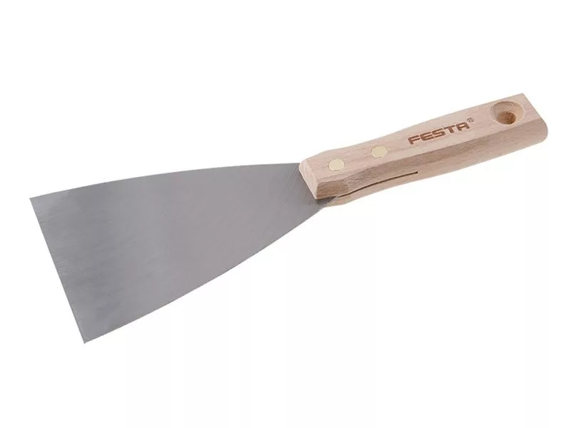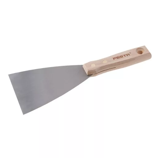 Festő simító (spatula) köszörült acél pengével és fa szegecselt nyéllel. A festősimító lyukak kitöltésére, felesleges anyag lekaparására stb. használatos. Penge szélesség: 100mm