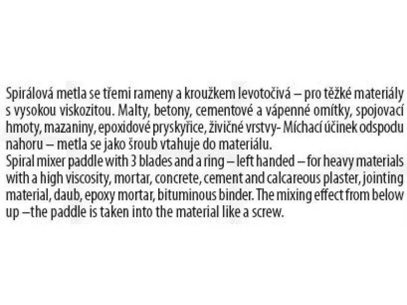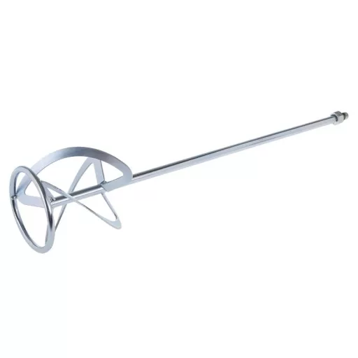Keverő - óramutató járásával megegyező irányban (keverési művelet alulról felfelé) - habverő, horganyzott, méret: M14 120 x 600 mm - M14, felhasználás: nehéz, nagy viszkozitású anyagokhoz, habarcsokhoz, betonokhoz, cement- és mészvakolatokhoz, ragasztóanyagokhoz, esztrichekhez, epoxi gyanták, bitumenes rétegek.