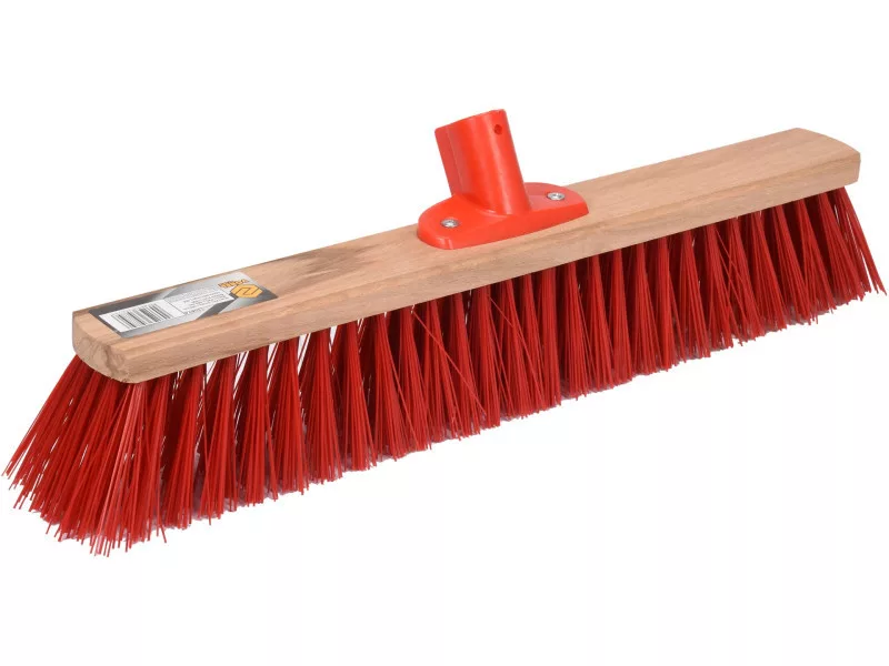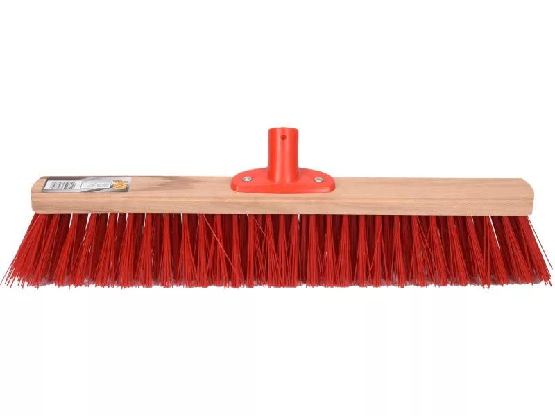 Street broom with wooden body in the working part made of hard plastic bristles. Equipped with a sturdy handle for attaching the handle. Useful for outdoor and indoor cleaning work, such as sweeping dust, sand, leaves, fresh snow, etc. Fits for handle 99420, 99421.