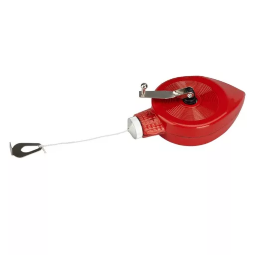 Fém csévélő, zsinór hossza 30m, felhasználás: átmenetek jelölése - vonalak építésben, festésben, SDK,..., a mellékelt porral feltöltés után (kék - külön rendelhető: kék 37096, világoskék 37094, piros 37097, világos-piros 37095, fekete 37098), eljárás: a csévélőt megtöltjük a mellékelt porral, rázással és a zsinór többszöri meghosszabbításával, újratekerésével színezzük, majd ketten kifeszítjük a zsinórt a kívánt helyen, hogy megjelöljük a vonalat és enyhén pörgetjük - ezzel vékony rétegben felvisszük a zsinórra fogott port a megjelölt anyagra, majd feltekerjük a zsinórt, ill. ismét hozzáadjuk a port, csomagolás: buborékfólia euro lyukkal.