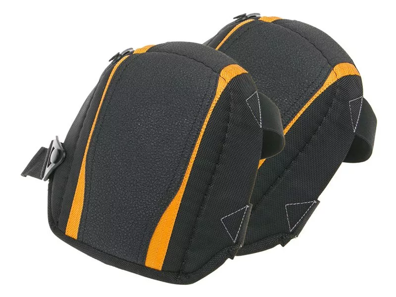 Térdvédelem, anyagkombináció - műanyag tartórész és zselés bélés, könnyíti a terhelést igényes és gyakori térdmunka során, széles és puha rögzítés tépőzárral - nem vág!, használat: védőelem zúzódások, hideg, téli munkavégzéskor térdelésnél - burkoló- és padlóburkolati munkáknál, csomagolás: euronyílásos papírdoboz.