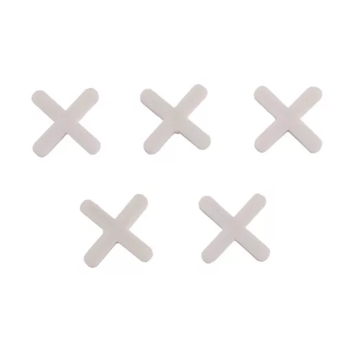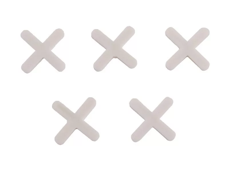 Kunststoffkreuze 4 mm, Menge: 100 Stück, Verwendung: Sicherstellung einer gleichmäßigen Fugenbreite und Fugenlinie beim Fliesenlegen, Verpackung: Blisterverpackung mit Euroloch.