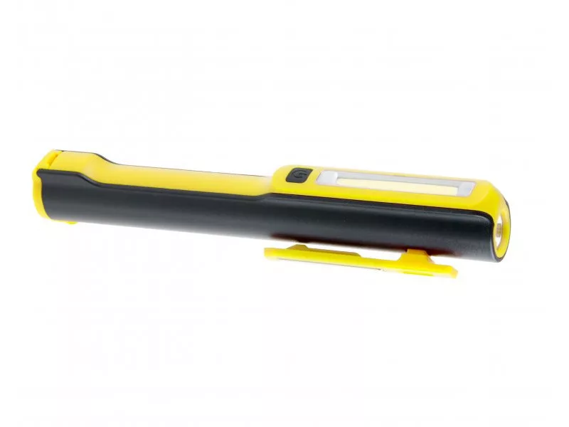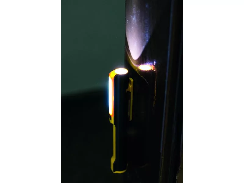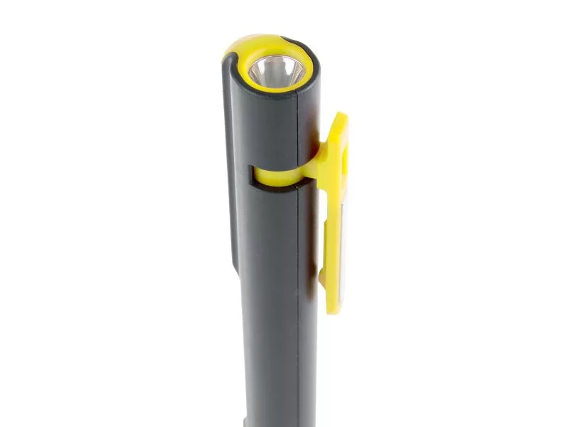 LED zseblámpa, 200mm, 40 lumen elülső lámpával és 120 lumen oldalsó lámpával, rögzítési mágnesekkel, forgatható klipszel. 3xAAA.